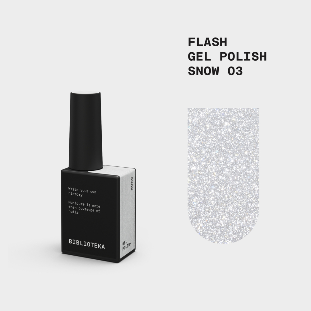 Гель-лак светоотражающий Biblioteka Flash Spark Inside №03 Snow Белое серебро 10 мл